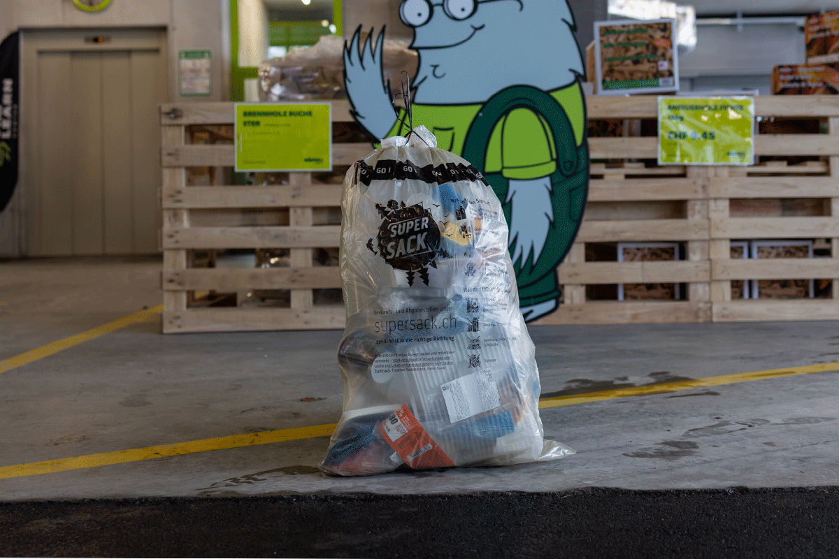 60 Liter Supersack fürs Recycling von Haushaltskunststoffen.